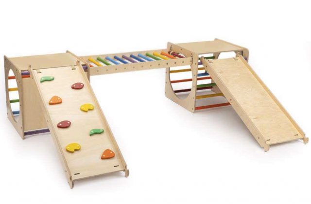 Elementi in legno per bambini con i quali è possibile creare percorsi di attività su cui strisciare, arrampicarsi e creare nascondigli.